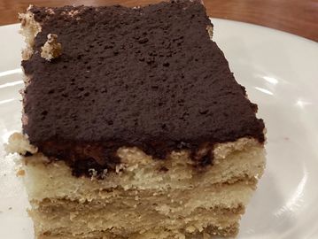 Shortcrust pastry filled with custard lemon cream and garnished with, pine nuts covered with sugar powder.